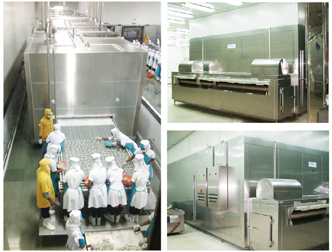 先進(jìn)的熱波動吹風(fēng)凍結(jié)技術(shù),具有熱交換效果好,凍結(jié)速度快的特點(diǎn)。特別適合于水產(chǎn)、果蔬、面食、分割肉以及各種調(diào)理食品的快速凍結(jié)。