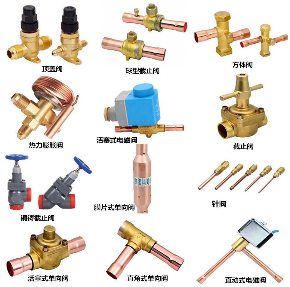 制冷配件閥門閥件系列_膨脹閥 電磁閥 截止閥 單向閥 方體閥 熱力膨脹閥、能量調節閥、膜片式單向閥、直角式單向閥、活塞式單向閥、球型截止閥、截止閥、頂蓋閥、方體閥、直線閥...